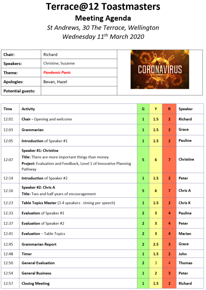“Congratulations to Rachel – Terrace@12’s newest member and our toastmaster of the day! Rachel joined our zoom meeting for the first time last week, and with no hesitation agreed to […]